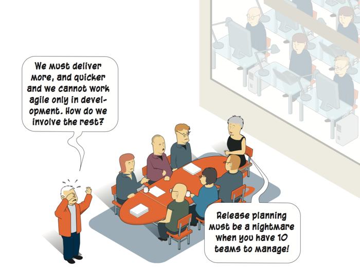 ... deals with hundreds of developers and many stakeholders who need to be productive together and having transparent synlighet in releaseplans and commitments
