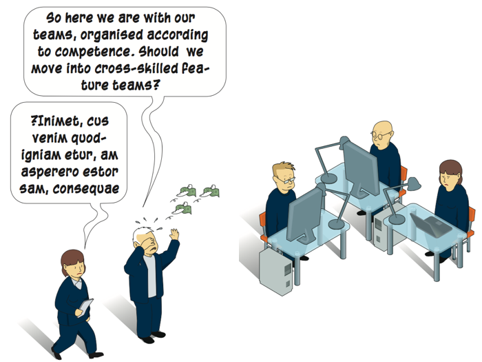 Example of scaling challenge: Company Alfa wants to transform the entire value stream according to Agile methodology. This in- cludes not only the developer teams but also marketing, integration and operations.